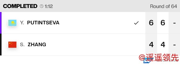 女单方面,率先出场的张帅仅用时1小时12分钟,就以2个4-6不敌普丁塞娃,止步正赛首轮,遭遇对后者的5连败。