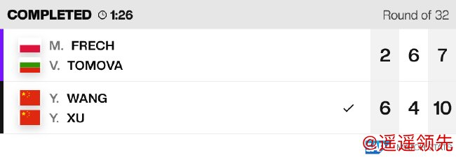 女双方面,王雅繁/徐一璠用时1小时26分钟,以6-2/4-6/10-7击败跨国组合弗莱彻/托莫娃,闯入正赛第二轮。接下来,她们将迎战头号种子达布劳斯基/卢特利芙。